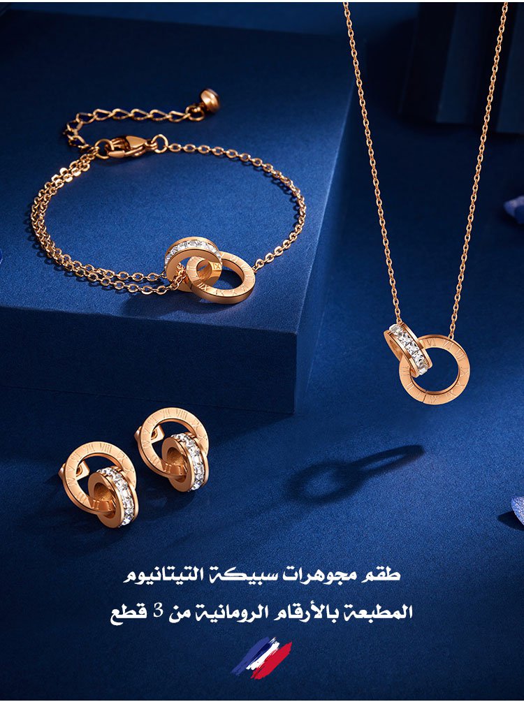 طقم مجوهرات سبيكة التيتانيوم المطبعة بالأرقام الرومانية من 3 قطع