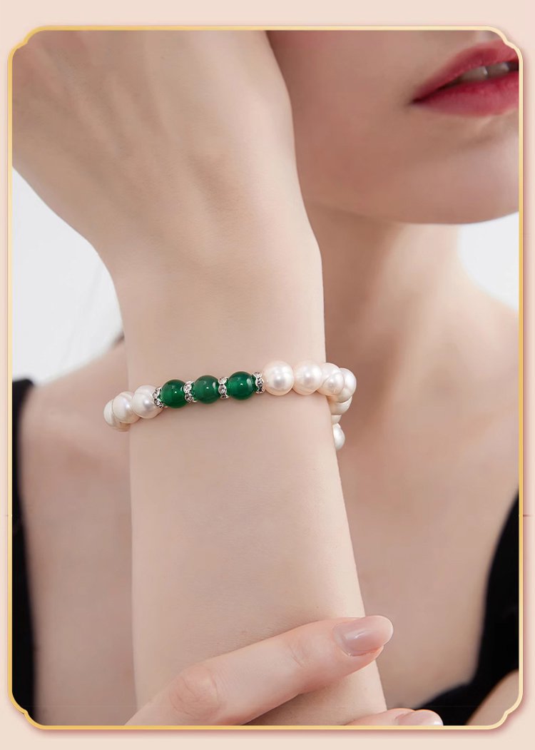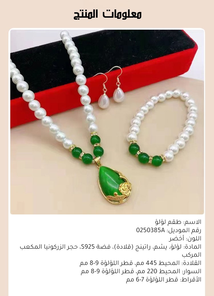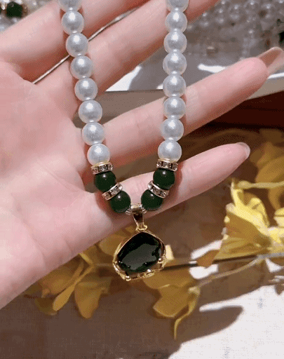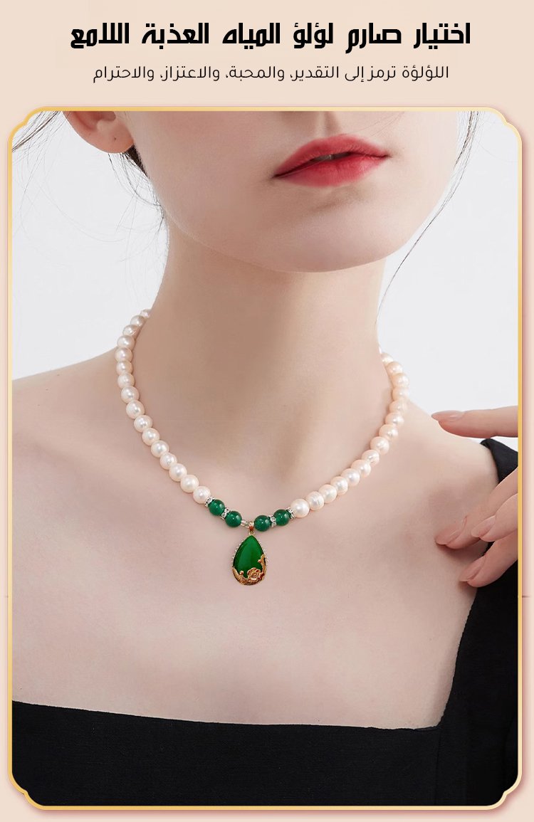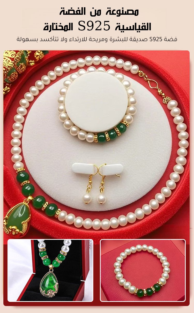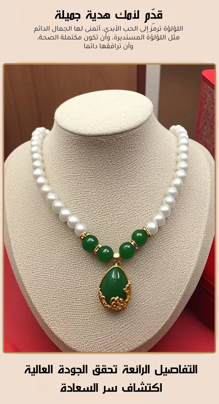 【هدية مختارة للأم】 طقم قلادة من اللؤلؤ واليشم الأخضر