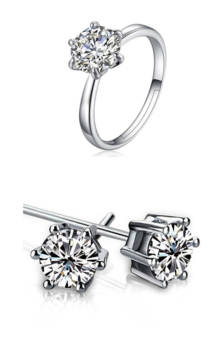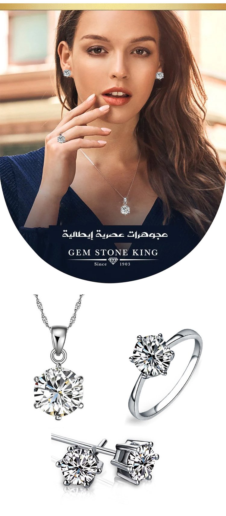 كل قطعة مصنوعة من البلاتين ومرصعة بحجر ماس اصطناعي ضخم.
